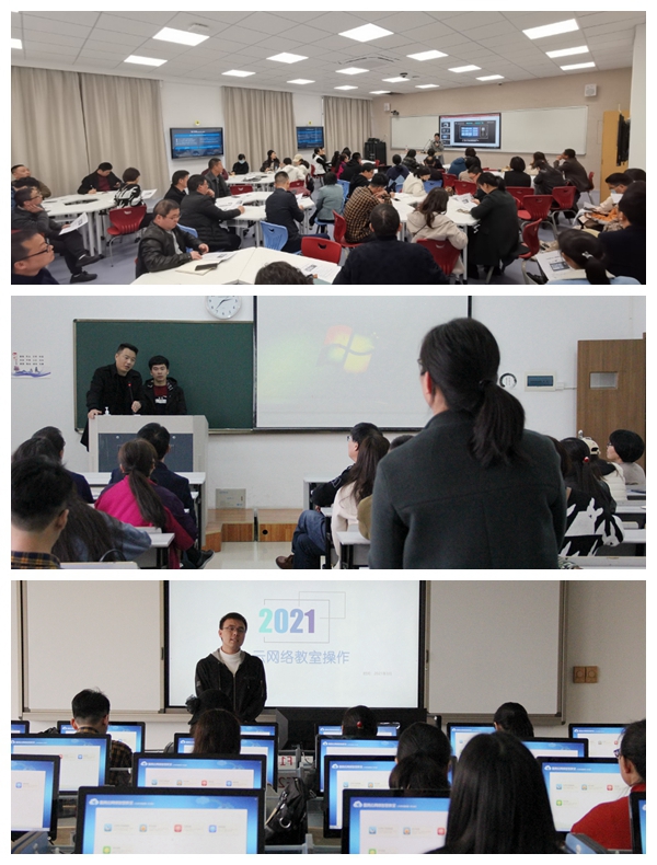 新学期,新教室!信息技术中心牵头建设的椒江校区6号教学楼8套智慧教室、4-5号楼58套多媒体教室云桌面电脑、1号楼2套语言实验室已经完成,本学期正在投入教学使用。为更好地帮助广大教师掌握使用技能,充分发挥教学设施作用,校教师教学发展中心联合信息技术中心,邀请到厂方培训工程师于3月1日下午举办了三类教室的使用培训,百余名教师参与。