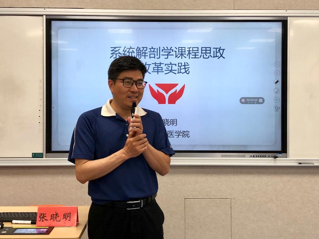 张晓明教授从“为何实践课程思政”、“如何实践课程思政”、“课程思政实践的成果”三方面分享了自己对系统解剖学这门专业课的课程思政改革经验。他对在课堂上如何激发学生的学习动力,如何在课堂内外全程育人,全方位育人有自己独到的见解和做法。他的经验对参会教师在课程中如何融入人文思政元素有了很大的启发。张晓明教授还就老师们关心的课程思政建设方面的问题做了详细解答和交流。