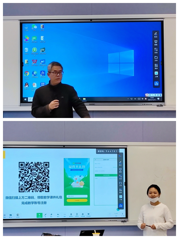 厂方的二位培训工程师详细讲解了多媒体教室的主要设备、功能及其使用方法。新建的多媒体教室具备了更多的智能化功能,实现了教师的板书书写及其存储、分发等功能,方便师生课后观摩学习;手机、笔记本投屏功能让教学更加轻松便捷;针对在多媒体教室开展的师生互动、生生互动、在线提问、答疑等多种教学组织形式,工程师也为大家进行了逐一讲解、演示,并指导老师们现场使用和体验。