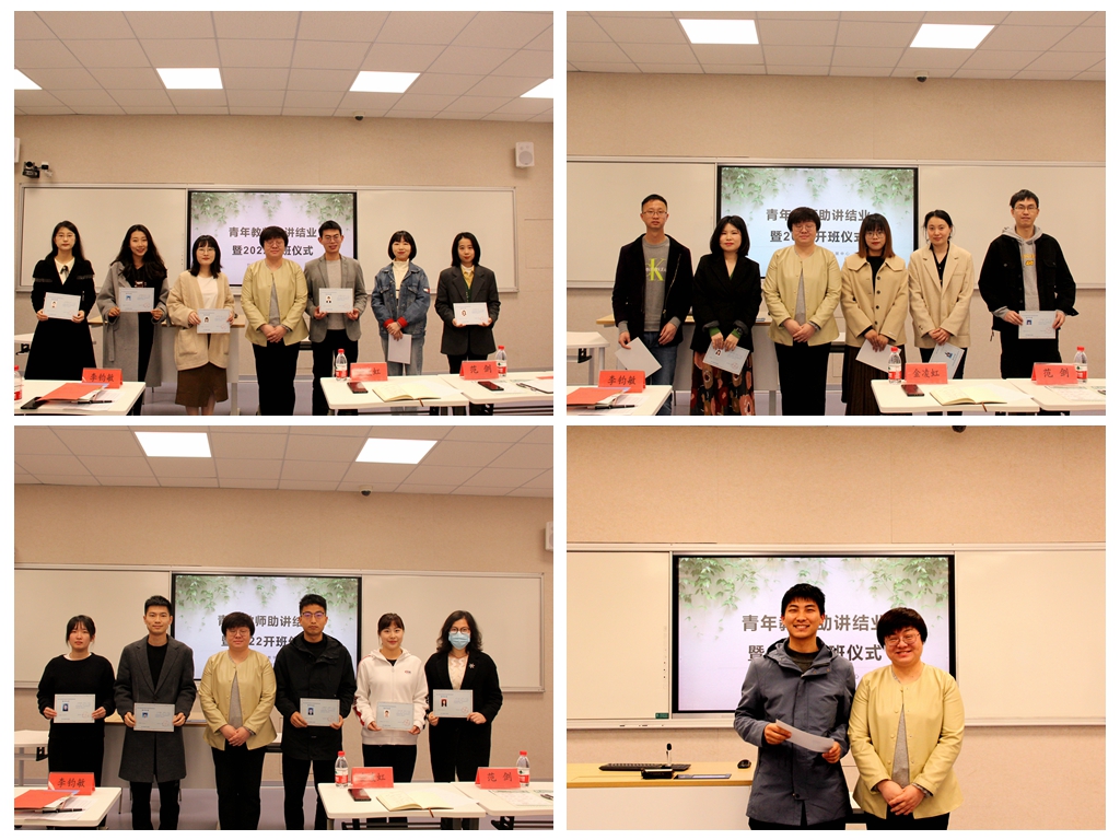 李钧敏向2021年助讲培训结业的青年教师表示祝贺,并为他们颁发助讲结业证书。