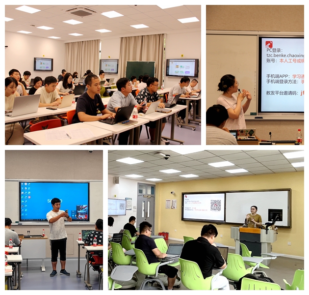 培训内容包括台州学院“随堂评”系统、泛雅平台、学习通、教师教学发展平台等多个网络平台的功能介绍和使用操作。通过现场操作演示,工程师向老师讲解了利用超星平台创建和运营线上课程的具体步骤,以及如何利用教发平台参与各类助讲学习。培训现场以“学做相融”的方式进行,参与教师携带笔记本电脑和手机,在技术人员的指导下边学边做,边练边问,及时讨论交流、现场气氛活跃。老师们积极好学、掌握很快,较为完整地了解了智慧教学平台的功能,掌握了基本使用方法。