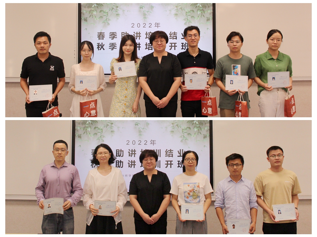 李钧敏对新入职的青年教师表示欢迎,对春季助讲培训结业的青年教师表示祝贺,并为他们颁发助讲结业证书。