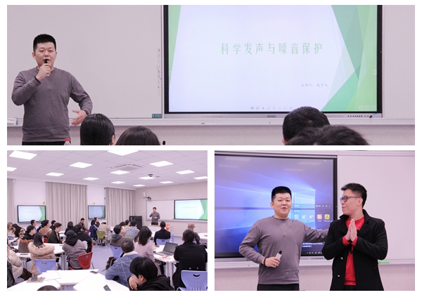 为帮助我校教师科学发声、保护嗓音和身体健康,提升课堂教学效果,11月30日下午,教发中心于椒江校区举办科学发声培训,邀请艺术与设计学院赵子元老师做专题讲座并指导训练。教务处副处长范剑主持,四十余位教师现场参与培训。