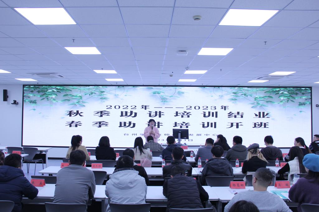 3月1日下午,椒江校区1号教学楼新建成的直播教室宽敞明亮,三十余位新老助讲教师汇聚于此参加教发中心举办的2022年秋季青年教师助讲培训结业暨2023年春季青年助讲教师培训开班仪式。校党委委员、副校长李钧敏出席活动并讲话,教务处处长金凌虹主持,人事处副处长徐璐洁参加活动。