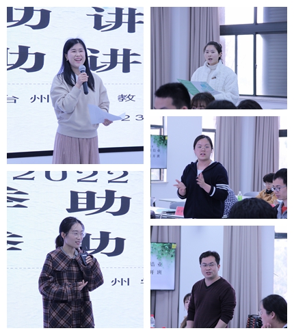 外国语学院马娜、电子与信息工程学院沈阳、高等研究院于书玲、商学院王攀作为优秀助讲教师代表上台发言。她们与大家分享了助讲培训期间的收获和感想,并对新入职的助讲教师提出了一些学习建议。新老助讲教师就助讲培养内容、考核要求等问题开展了轻松愉快的讨论交流,并对今后的教学工作提出了美好展望。