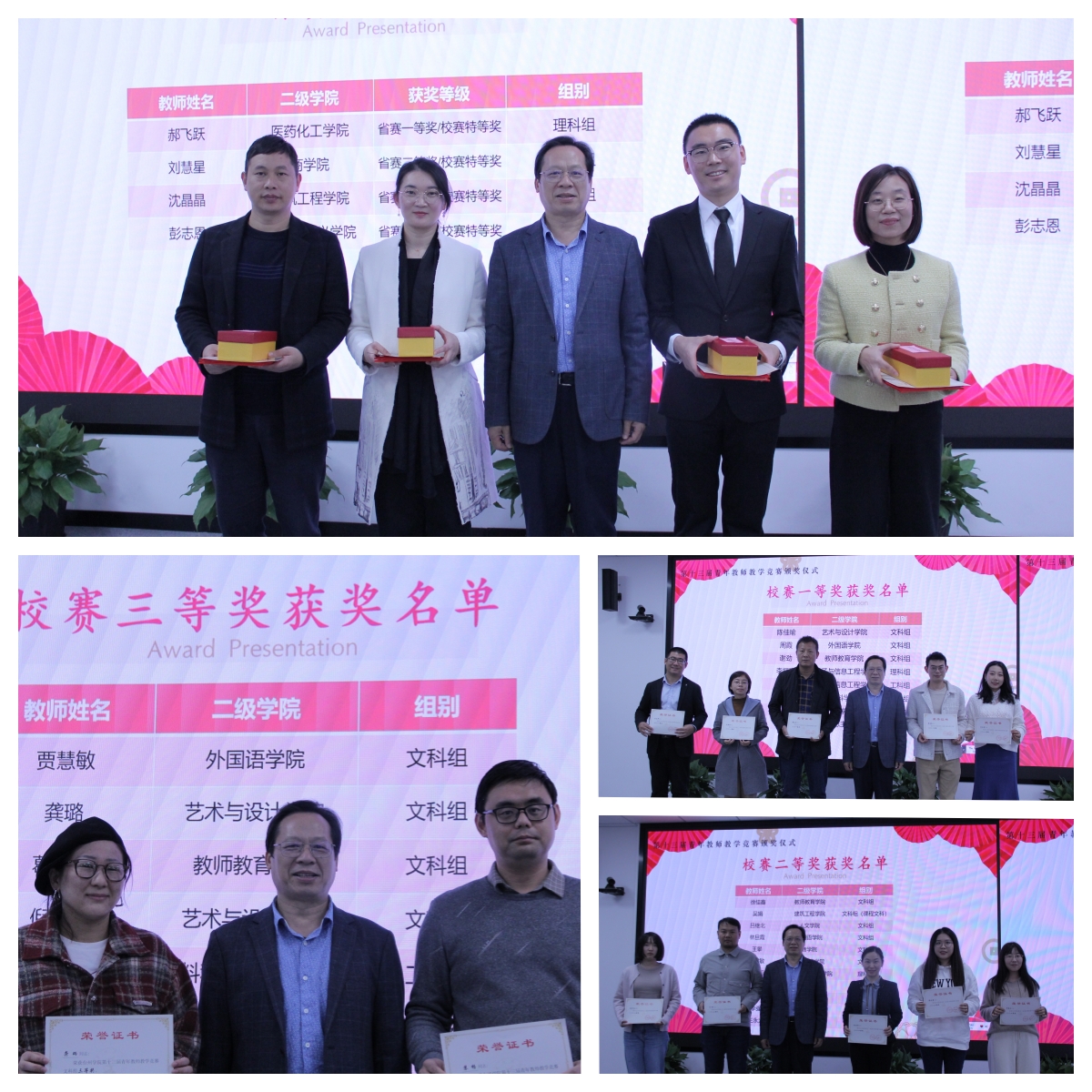活动伊始,王金宝宣读了本次青教赛的获奖文件。在本次青教赛中,我校教师获得省赛一等奖1项、二等奖3项。潘通天向获奖教师表示祝贺并颁发证书。
