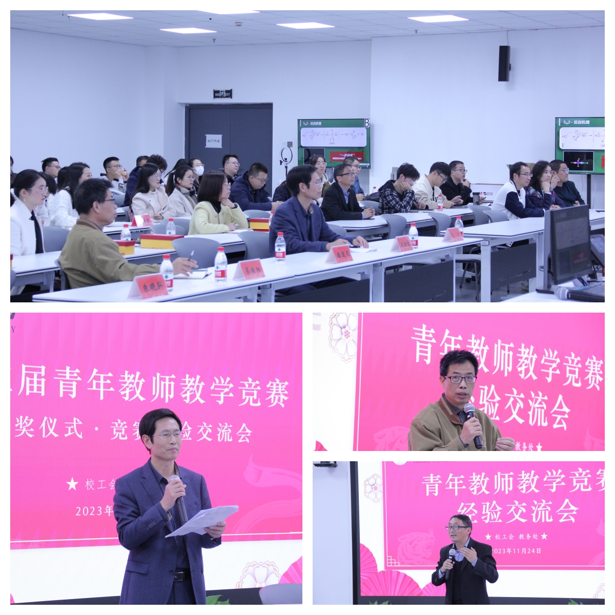 11月24日下午,校工会与教务处联合举办第十三届青年教师教学竞赛颁奖仪式暨竞赛经验交流会。校党委副书记潘通天出席并为获奖教师颁奖。校工会专职副主席王金宝主持,校督导蔡培阳、校级及省级青教赛获奖教师参加并做分享交流四十余名青年助讲教师参与现场活动。