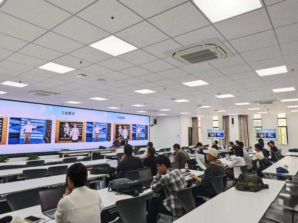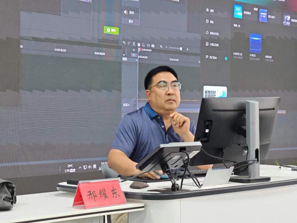 首先,邢耀东从教师的仪表仪态和肢体语言出发,介绍了视频录制前所需要准备的工作要求各位教师在录制时要注重教态,语言精炼;之后他向各位教师介绍了喀秋莎和剪映两款剪辑软件的具体使用流程和方法,现场参会的各位老师也带上了自己的电脑进行现场实操,进一步加深了对剪辑软件的了解。