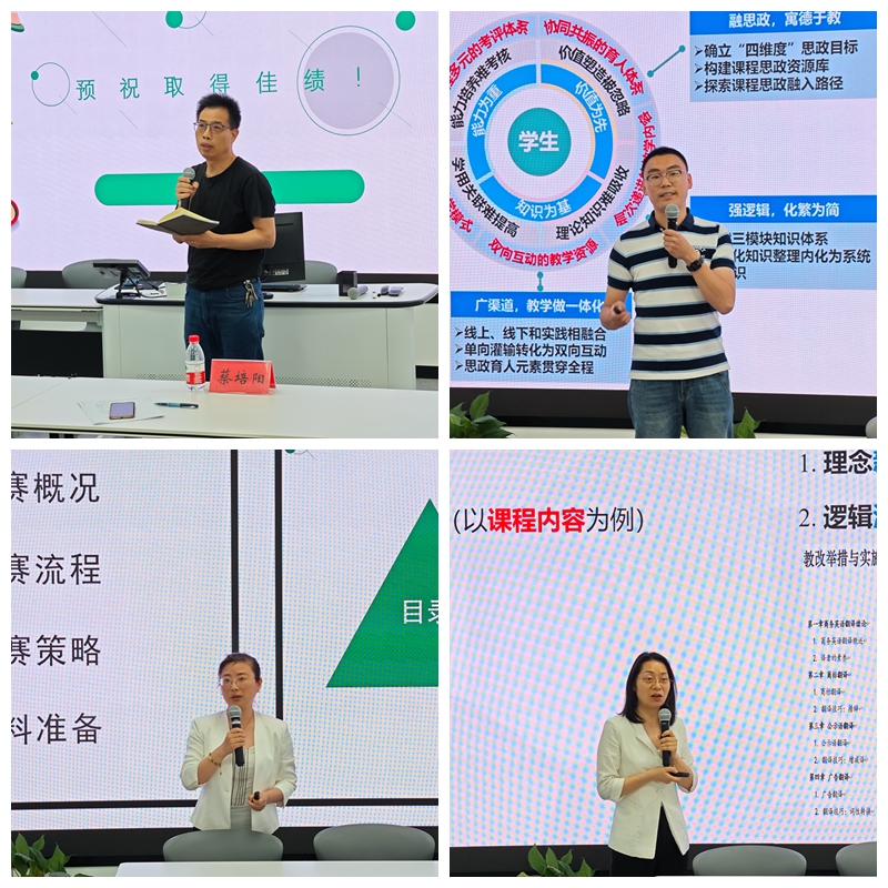 会上,教务处解读了台州学院第五届教师教学创新大赛的通知文件。我校在浙江省第四届高校教师教学创新大赛获奖教师毛静林、郝飞跃和戴敏分享了自身的参赛经验。蔡培阳对结合近年来我校参赛培训和省赛获奖情况做了竞赛辅导报告。