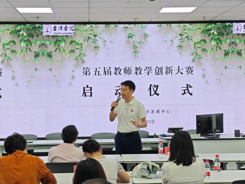 为深入推动高等教育教学改革,有效助力“四新”建设,5月22日下午,教发中心举行“台州学院第五届教师教学创新大赛”启动仪式,校党委委员、副校长李建军出席并讲话。教务处副处长范剑主持,邀请学校浙江省第四届高校教师教学创新大赛获奖教师分享参赛经验,校教学督导蔡培阳、各二级学院教学院长、优秀骨干教师和2024年春助讲教师参加。