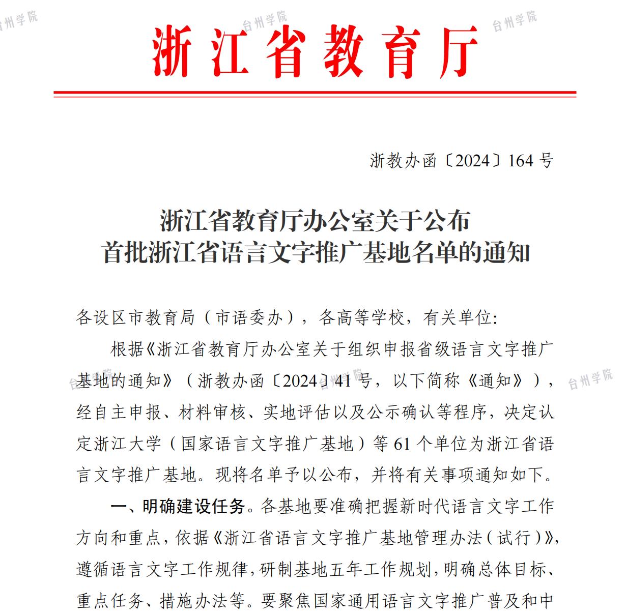 近日,省教育厅正式公布首批浙江省语言文字推广基地名单。经材料审核、项目论证、实地考察等程序,确定61个首批省级语言文字推广基地。我校成功入选。