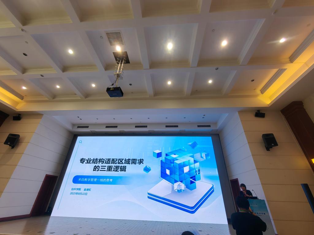 教务处处长金凌虹受邀代表学校做题为《专业结构适配区域需求的三重逻辑》的特邀报告。报告基于加快建设教育强国、新科技革命冲击、人口结构新趋势等背景,从国家逻辑、战略导向阐述了专业结构的行政塑造性,从市场逻辑、需求导向阐述了专业结构的产业驱动性,实践逻辑则在高校分类视角下,强调地方应用型本科高校应坚持动态适配和自我革新。报告以台州学院为例,介绍了学校实施“校城共生”发展战略,秉承“办好一所大学、繁荣一座城市”的使命担当,阐述了我校“随产而动、随需而调、随新而聚”专业结构服务区域发展的需求响应链构建、推进以“课堂革命”小切口重塑教育教学生态、致力于打造“最关爱学生的大学”等教育教学改革动态。报告充分展示了台州学院近年来在应用型大学建设方面的探索成果,获得与会代表的热烈反响与高度评价。