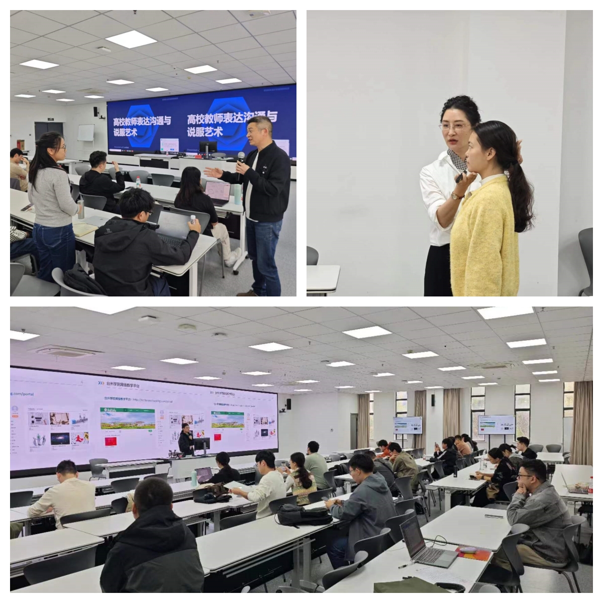 礼仪修养模块聚焦教师职业规范与沟通表达。培训开篇,医学院周敏老师以《教师礼仪与修养》为主题,从外在规范到内在修为构建完整礼仪培养体系,她结合高校教学场景,详细解读教师着装原则与课堂举止规范,通过课堂互动仪态模拟环节,让教师直观掌握职业形象塑造技巧;人文学院李鉴兵老师带来的《高校教师表达沟通与说服艺术》课程,聚焦教学中的语言生产力,提升课堂表达艺术。他从普通话发音矫正、体态控制训练到课堂语言节奏把控,系统提升教师的表达精准度与感染力。